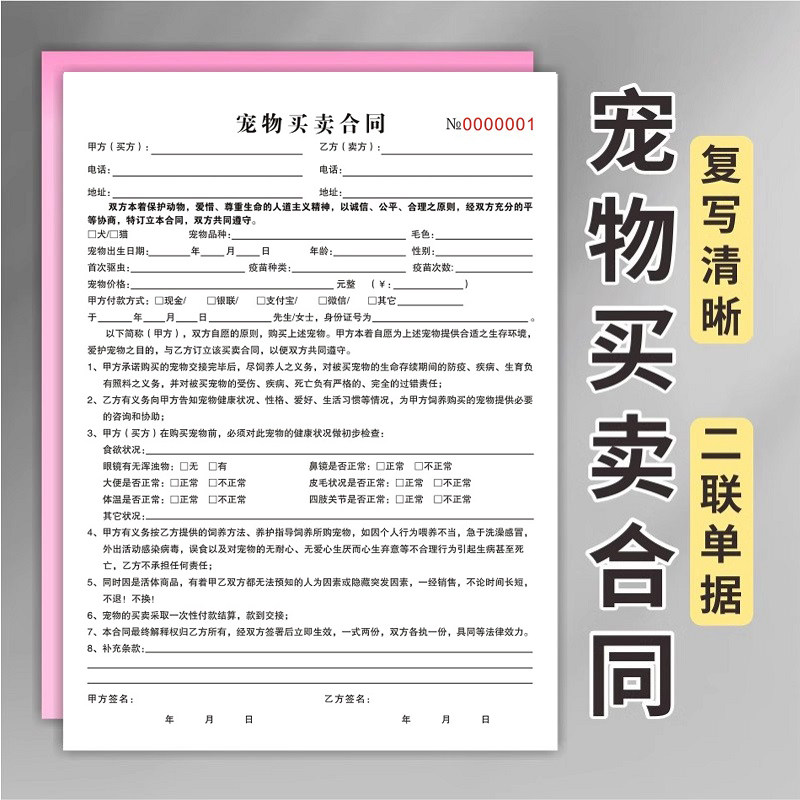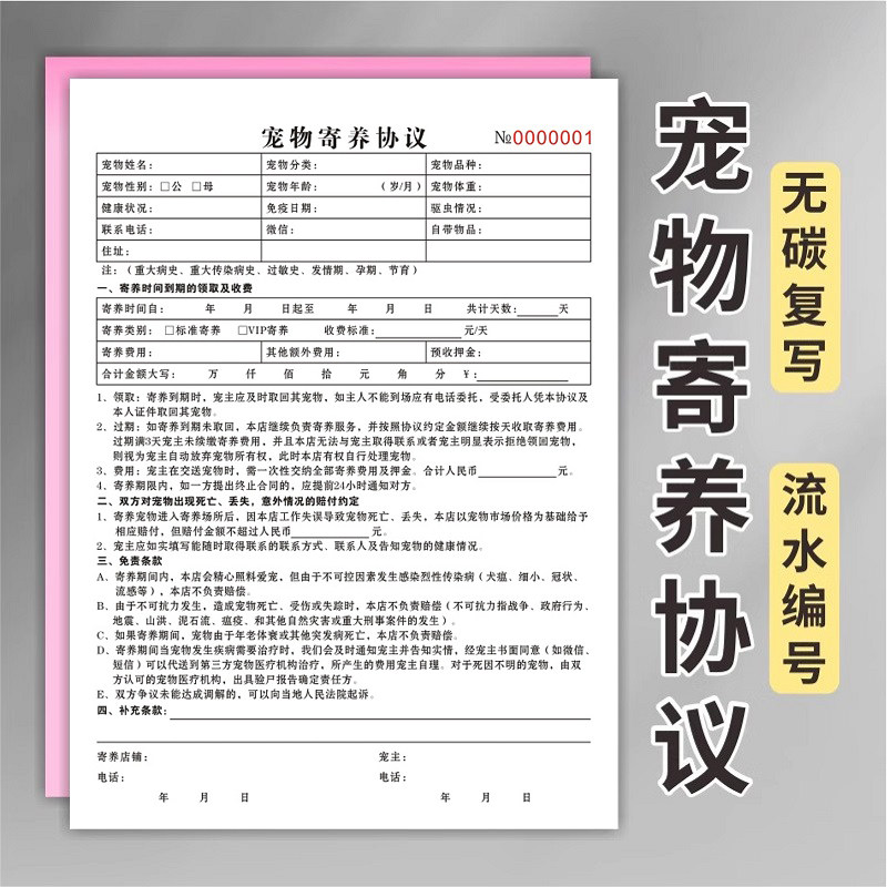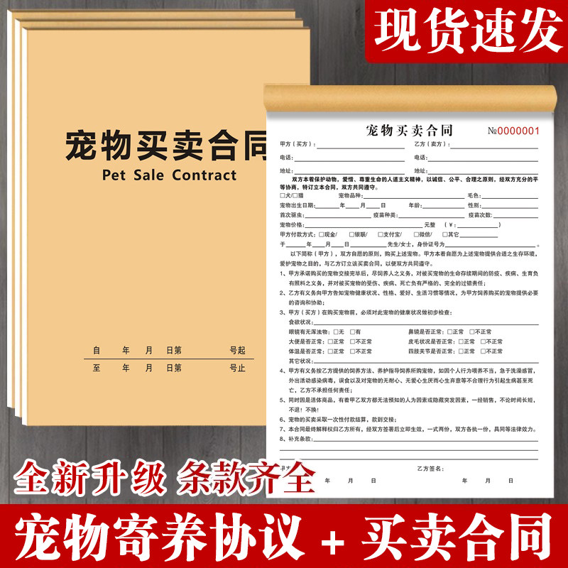 宠物寄养协议书领养购买交易收据美容馆消费登记表宠物店买卖合同