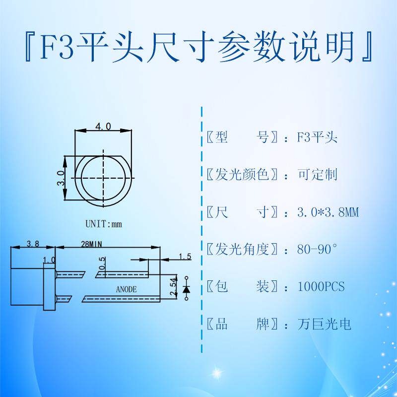 3mm直插led灯珠F3平头有边透明黄色信号指示灯长脚高亮发光二极管