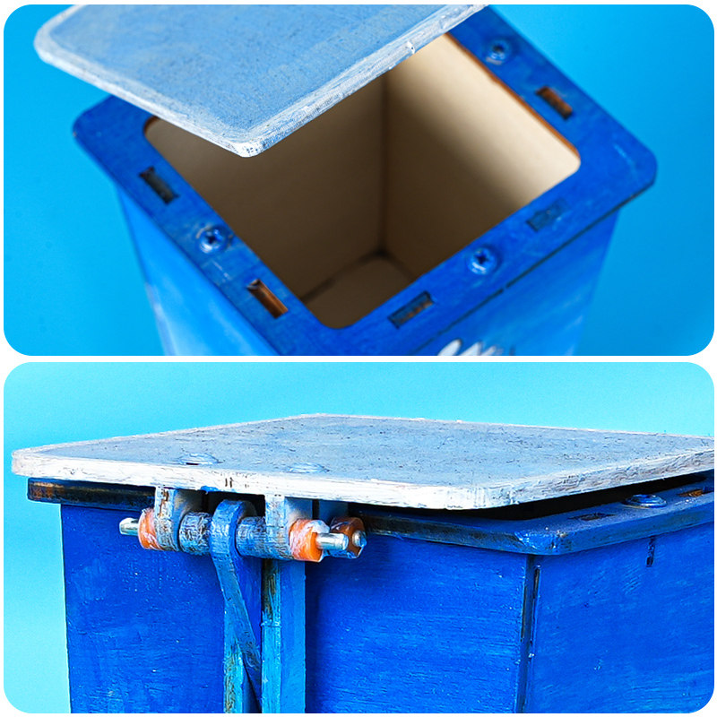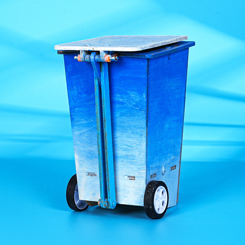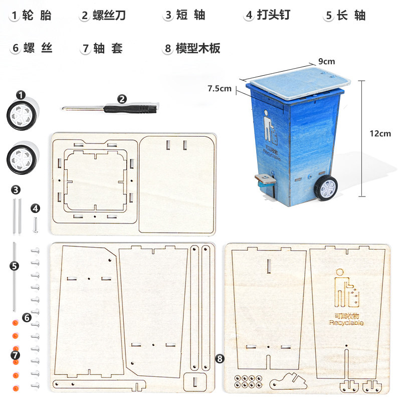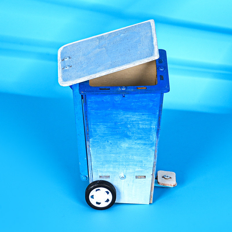 垃圾桶脚踏翻盖木制拼插杂物箱科技小制作小学生发明实验手工推荐