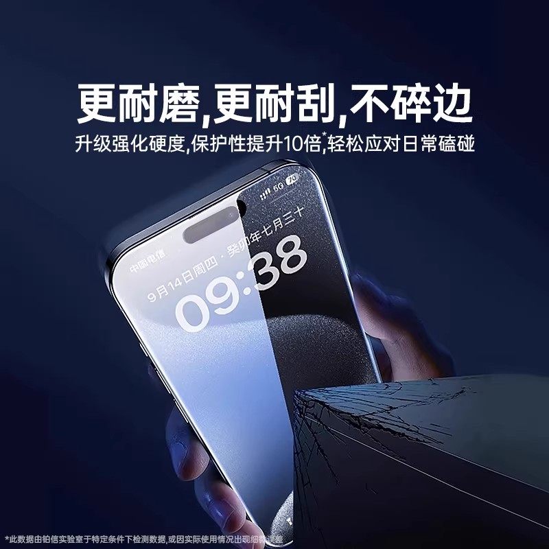 倍思无纹膜适用苹果iPhone17钢化膜AR抗反射16ProMax保护膜15Pro无尘仓14手机贴膜13全屏覆盖12抗摔11防爆Air