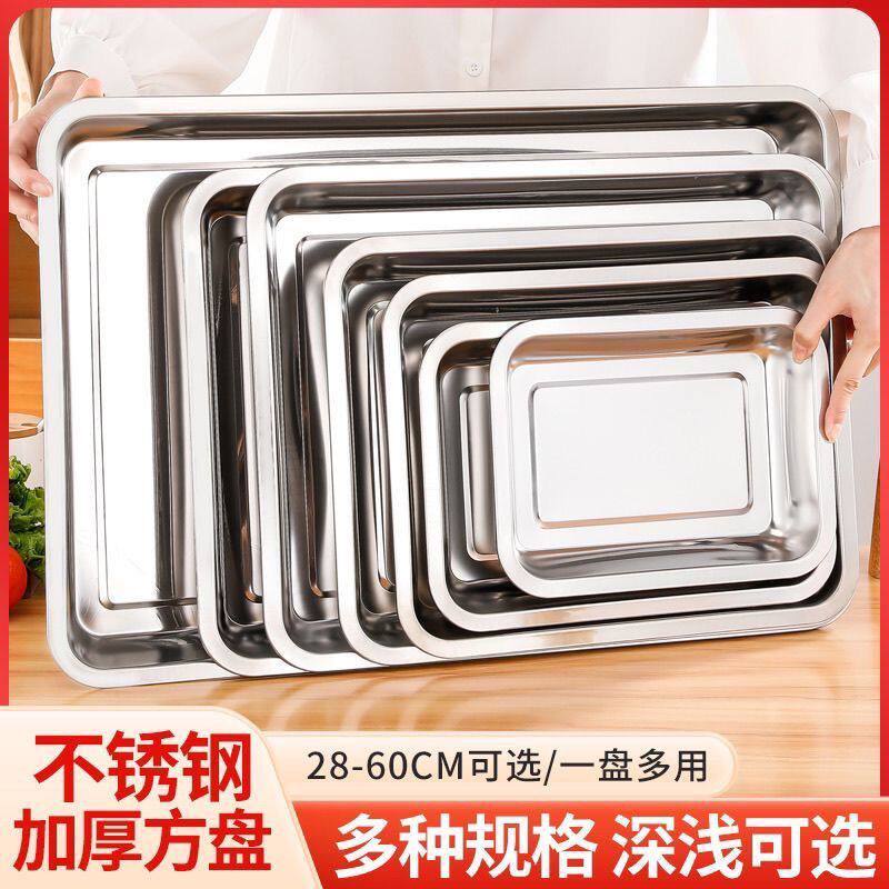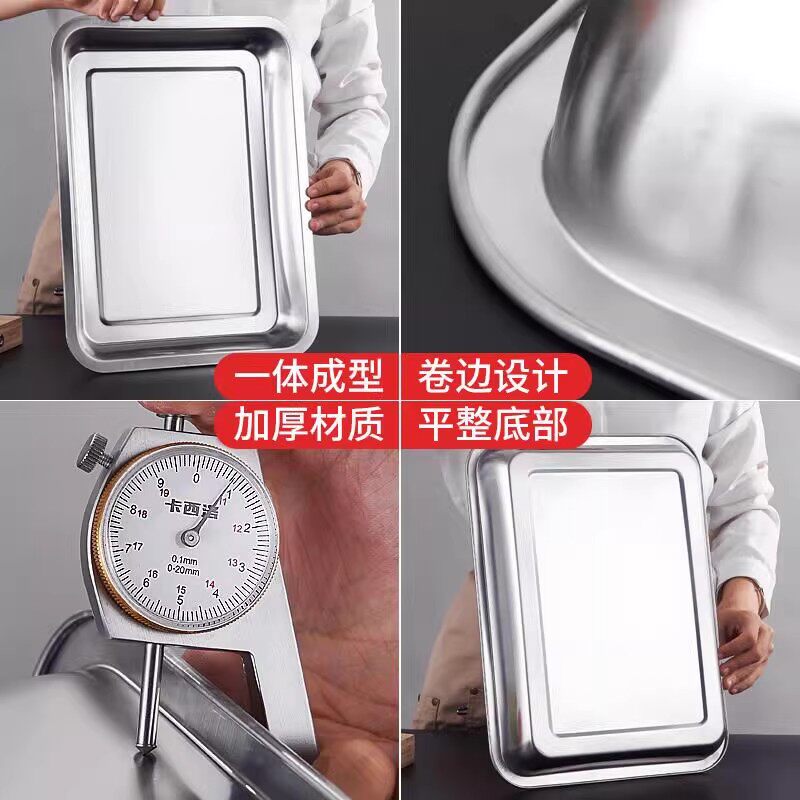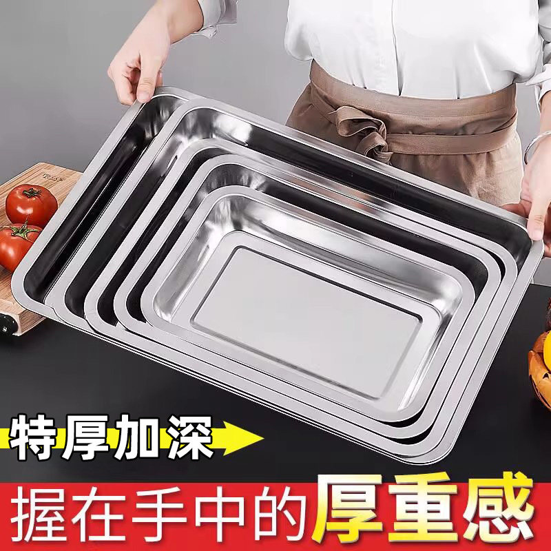食品级304不锈钢托盘长方形盘子家用方盘商用烤鱼盘铁盘子烧烤盘