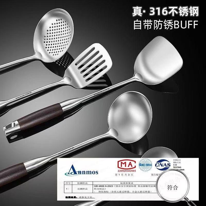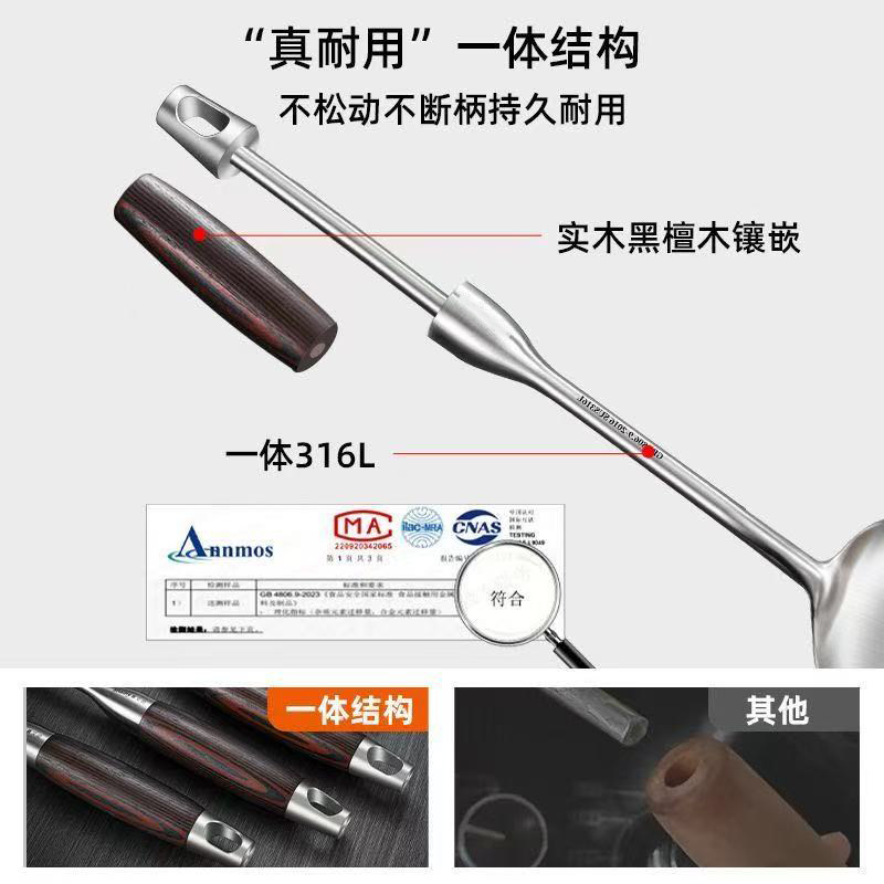 德国锅铲316不锈钢加厚炒菜铲子汤勺漏勺家用厨具炒勺套装铁锅铲
