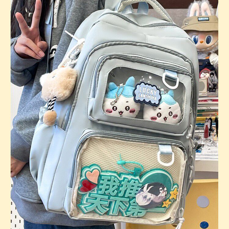 双肩包2025新款学院风书包少女百搭透明痛包学生上课半坡女包