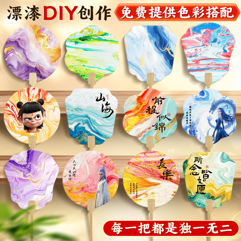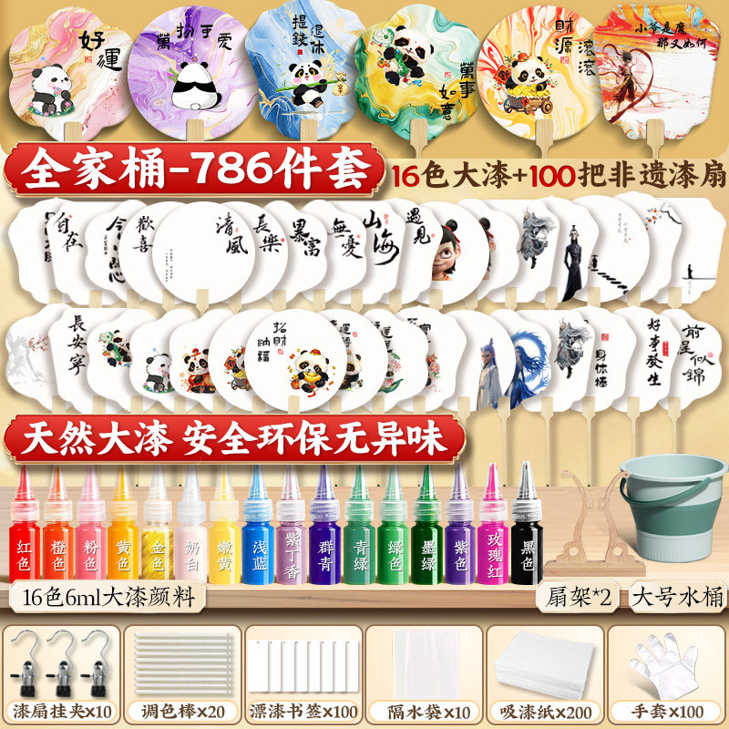 漆扇制作材料包全套批发非遗手工diy漆扇成品专用桶迷你漆扇儿童空白书签吸水纸定制漆扇工具展示架空白漆扇
