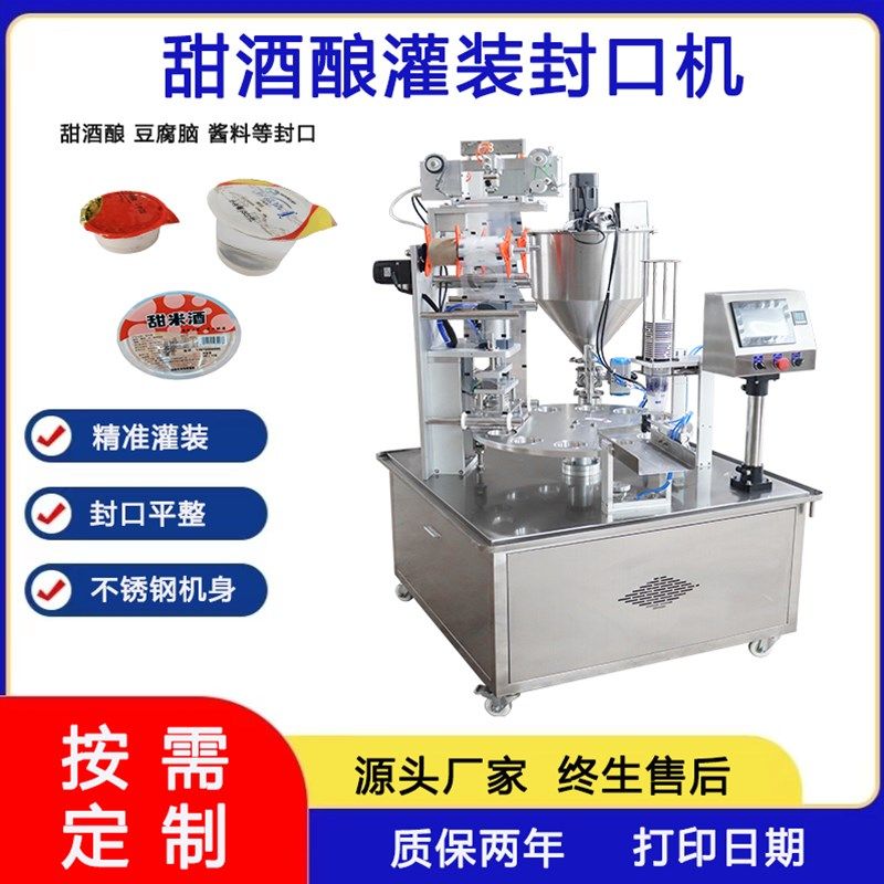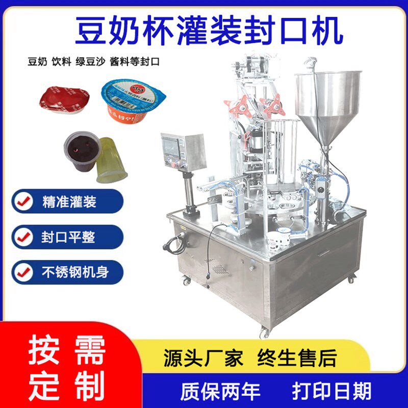 全自动液体灌装封口机商用牛奶饮料豆浆封杯机果冻酸奶酱料包装机