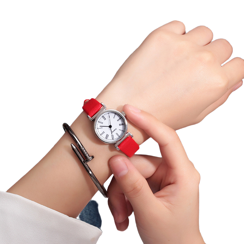小表考试韩版简约小清新学生女表白搭气质红色手表细带防水时装表