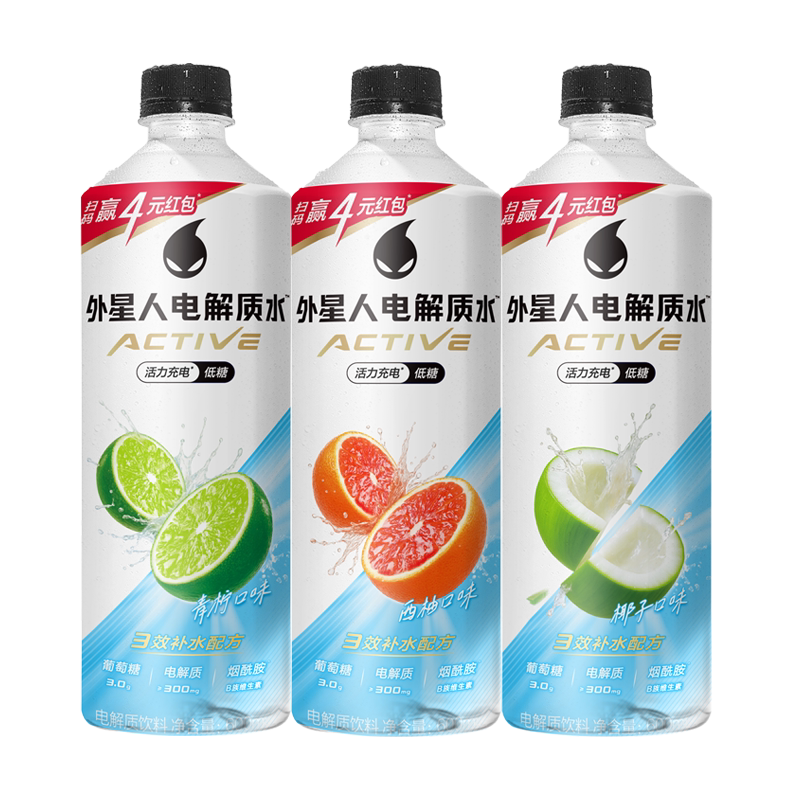 外星人低糖电解质水600ml*15瓶整箱多口味补充电解质椰子味青柠味