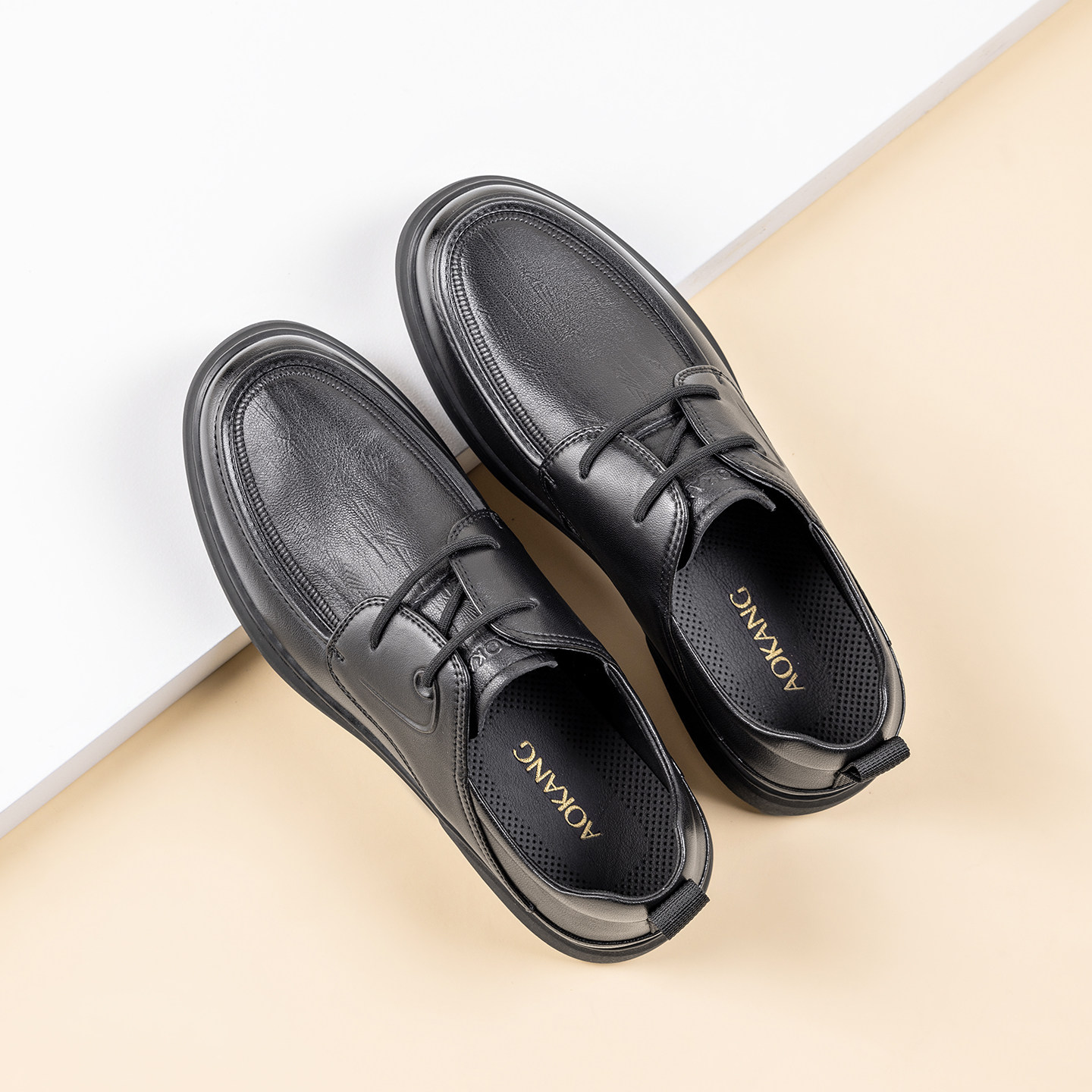 奥康男鞋春秋季时尚商务休闲皮鞋男真皮软面系带办公室百搭爸爸鞋