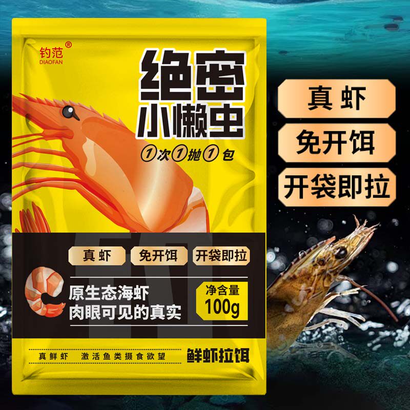钓范绝密小懒虫钓鱼饵料免开饵鲜虾饵生鲜虾滑虾拉鱼饵免拌鲫鱼饵