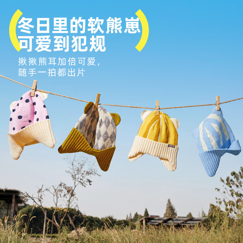 hugz儿童帽子男孩女孩保暖针织毛线帽秋冬季户外护耳防风熊仔帽子