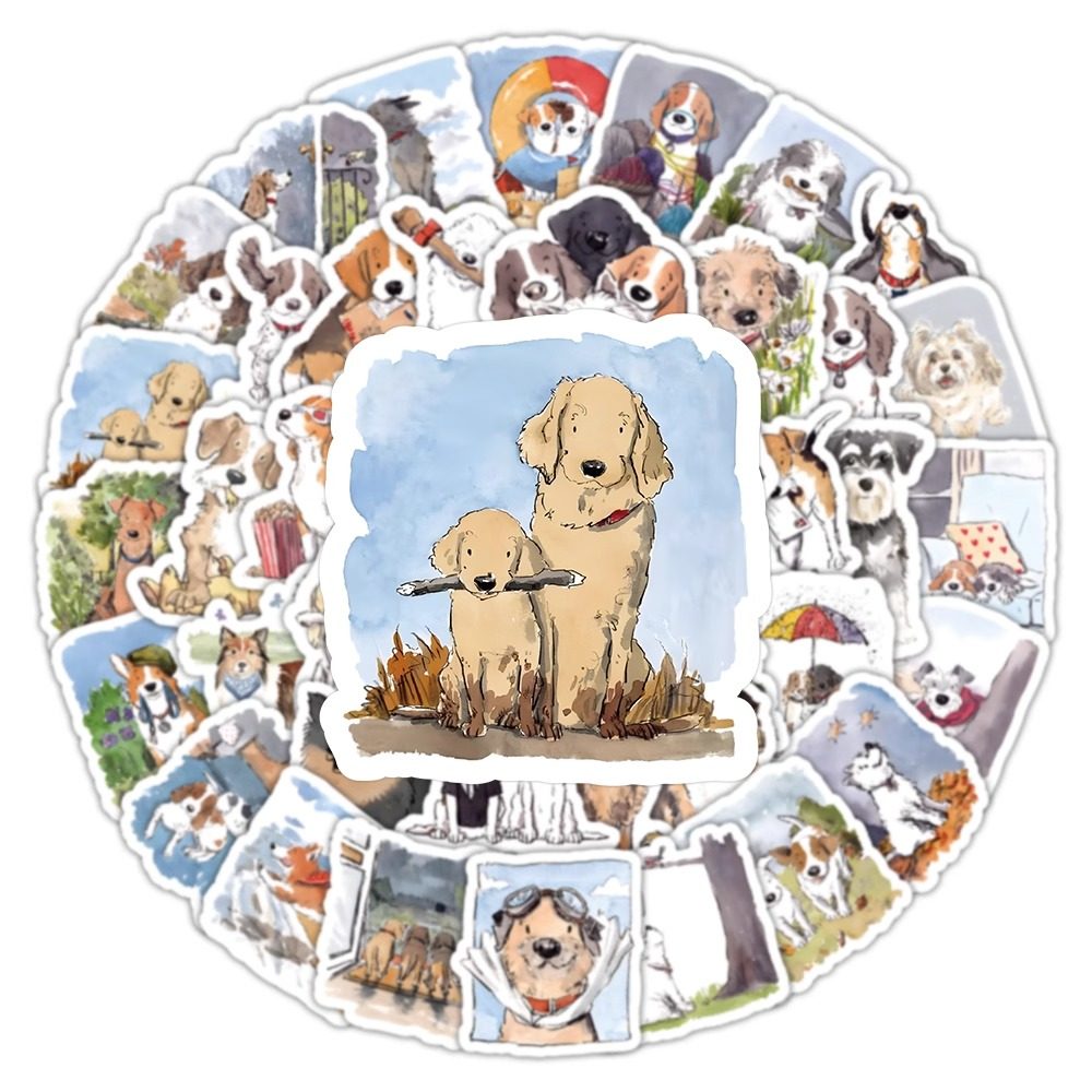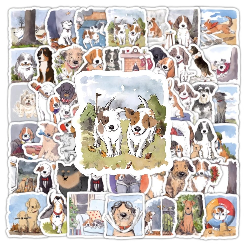 快乐修勾贴纸小狗狗可爱贴画行李箱笔记本手账素材装饰图案防水贴