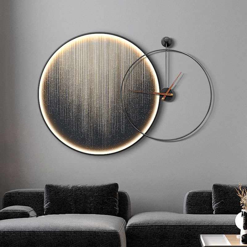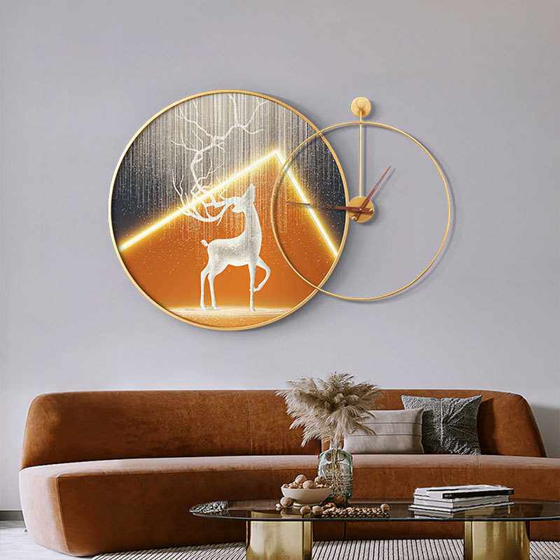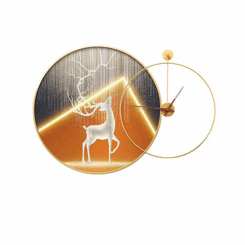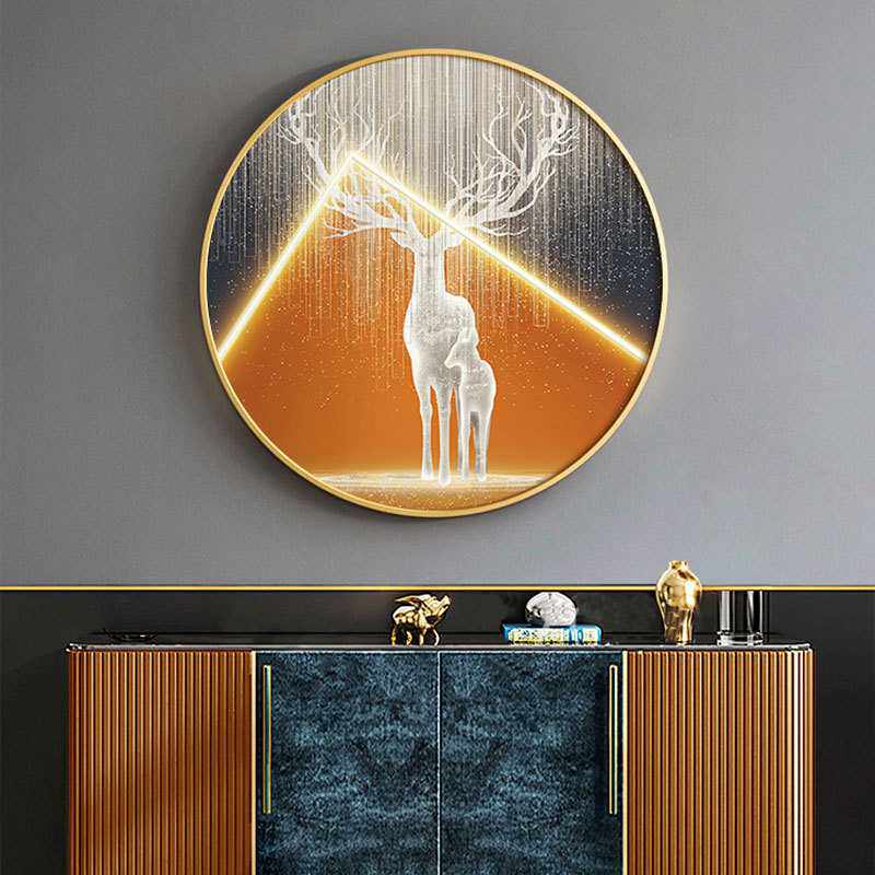 轻奢客厅装饰画沙发背景墙挂画发光led灯画麋鹿现代圆形餐厅玄关
