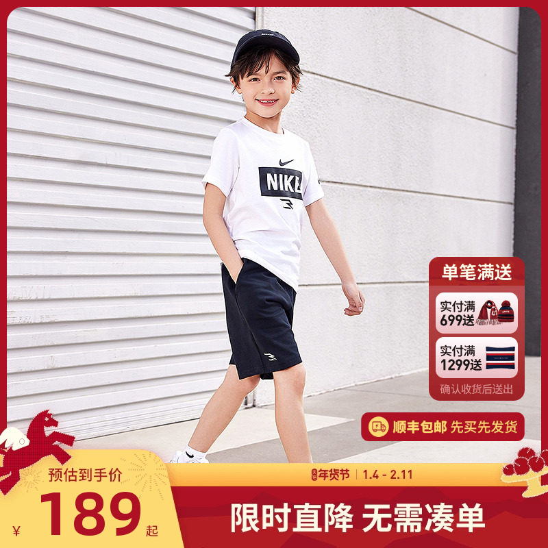 Nike 3brand儿童套装男童短袖T恤短裤五分裤子两件套夏季透气夏装