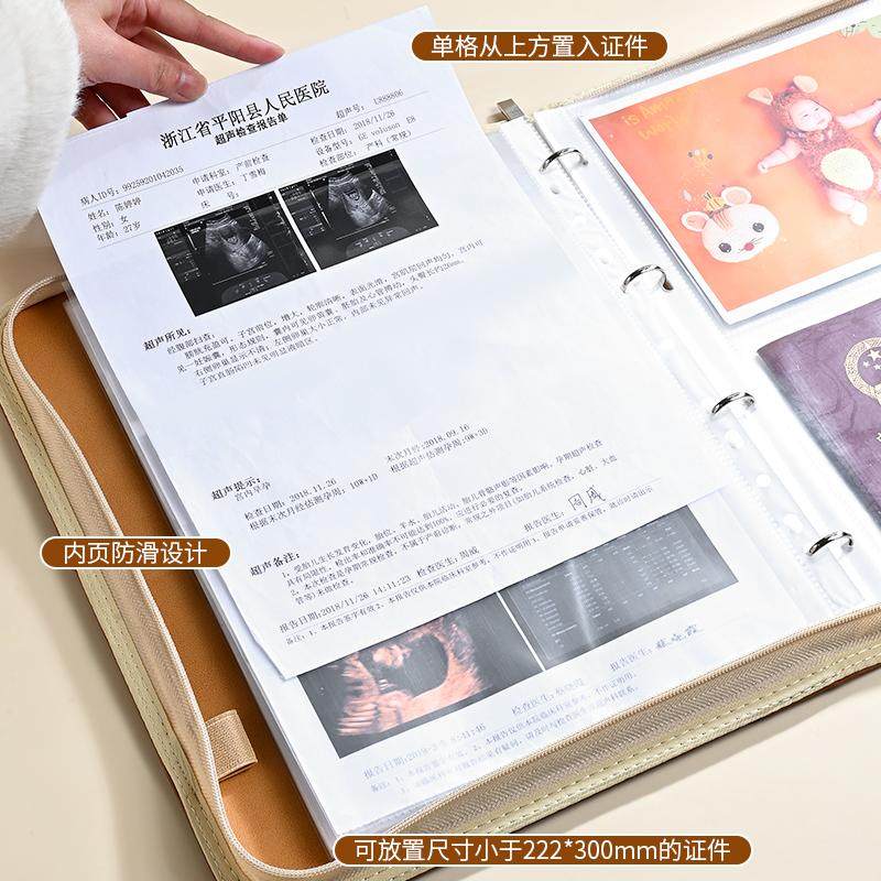 家庭证件收纳A4资料袋大容量活页出生证保护套户口本宝宝疫苗孕检