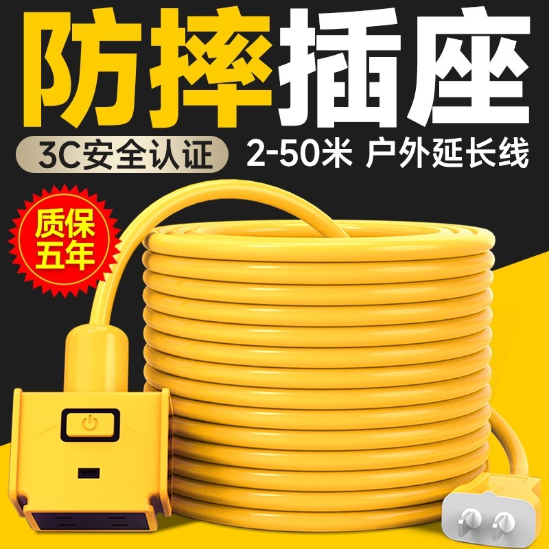 电动车充电延长线插排插座户外防水插大功率电源接线板带线2/50米