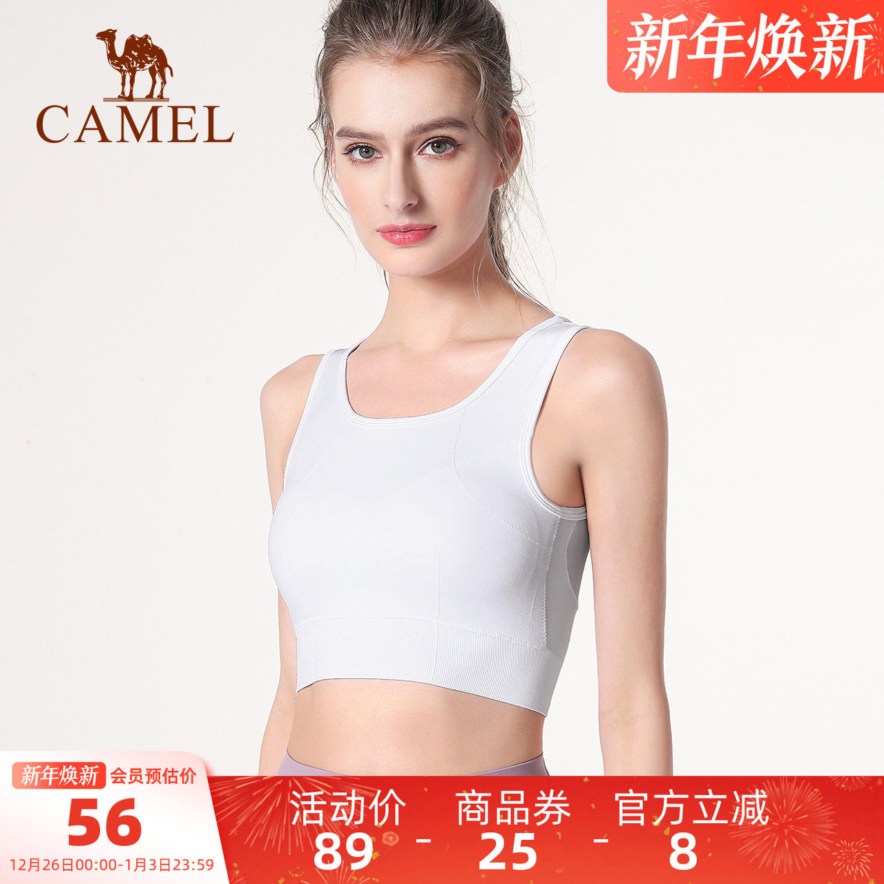 骆驼瑜伽背心女士带胸垫夏季休闲健身服上衣跑步运动内衣外穿网纱