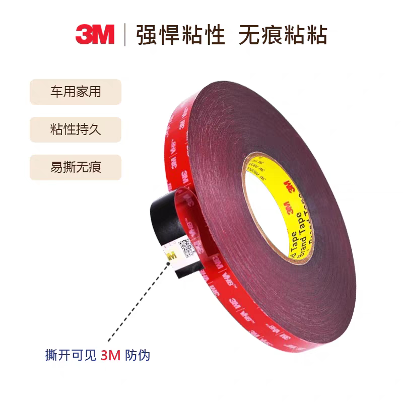 3M5925VHB双面胶汽车专用雨眉尾翼高粘耐温防水泡棉胶带0.64mm厚