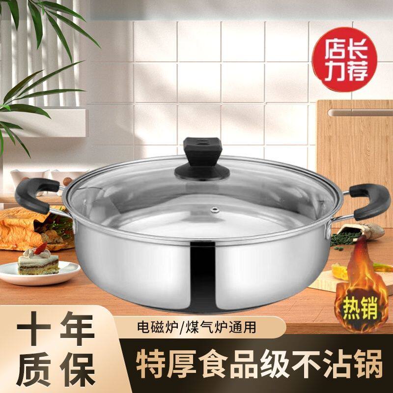 食品级304加厚不锈钢鱼鳞火锅家用加深汤锅带盖不粘锅燃气电磁炉
