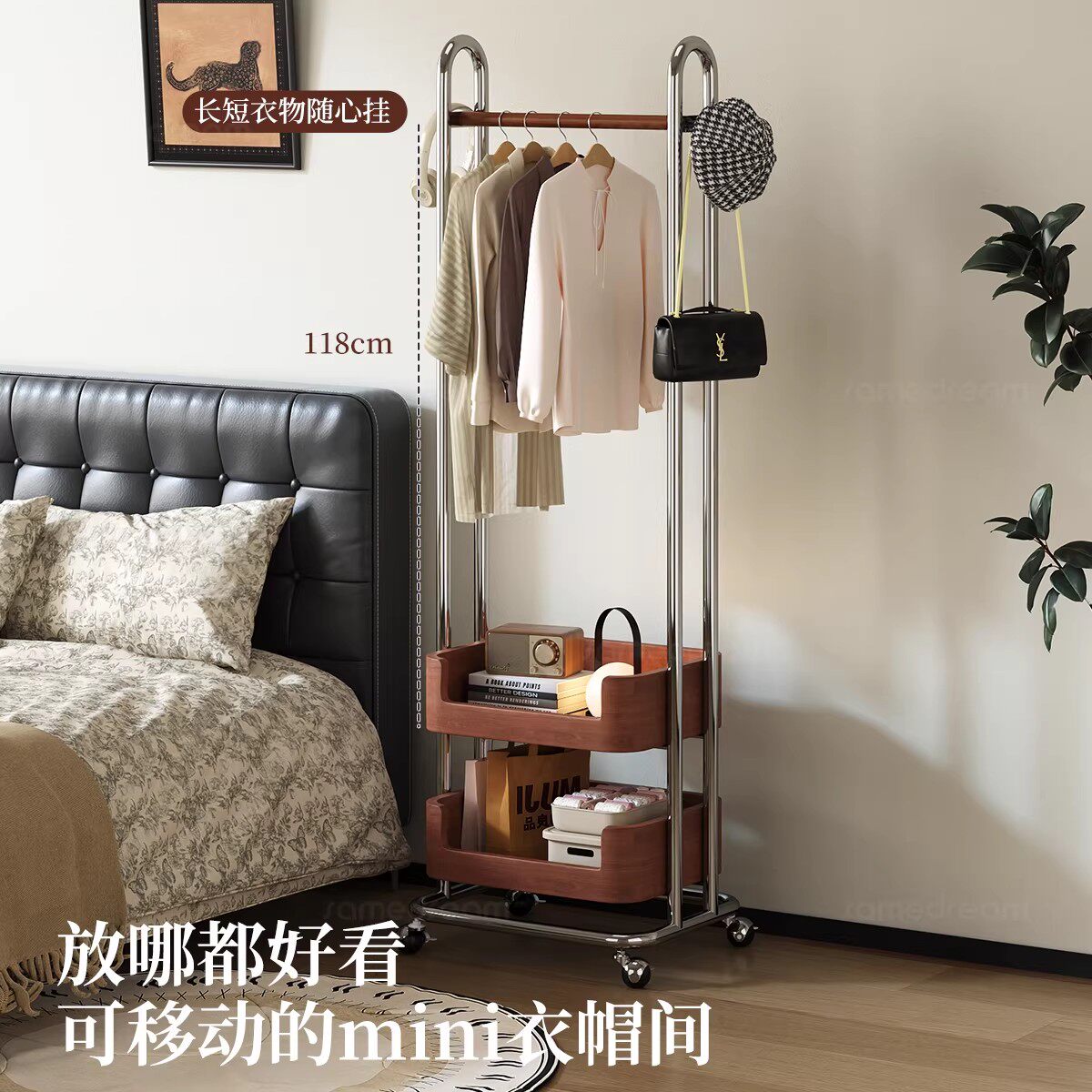 网红可移动挂衣架落地卧室家用室内衣服收纳置物架衣帽架客厅阳台