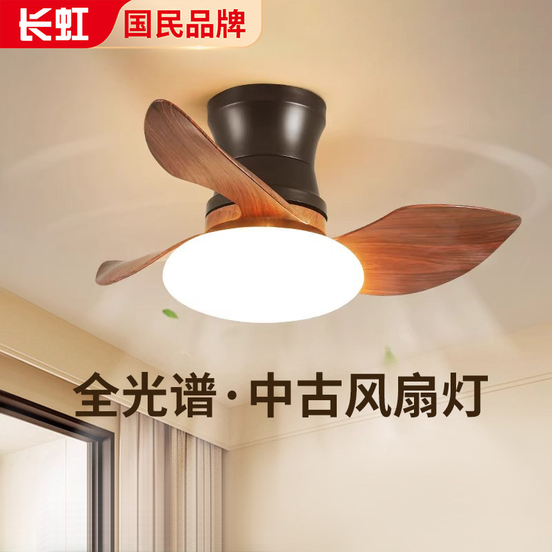 长虹静音卧室书房吸顶风扇灯中古复古餐厅吊扇灯2025新款护眼灯具