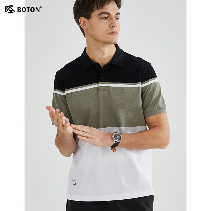 【时尚清爽】波顿2025年春夏男士条纹户外休闲短袖运动简约polo衫