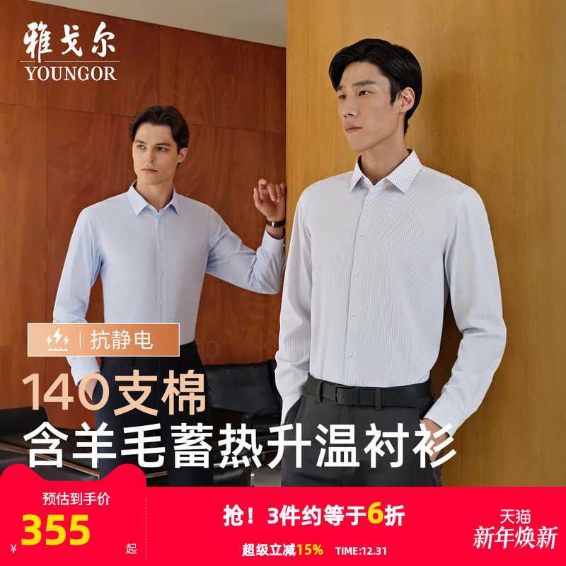 【羊毛蓄热升温】雅戈尔秋季新品商务休闲条纹保暖绒面长袖衬衫男