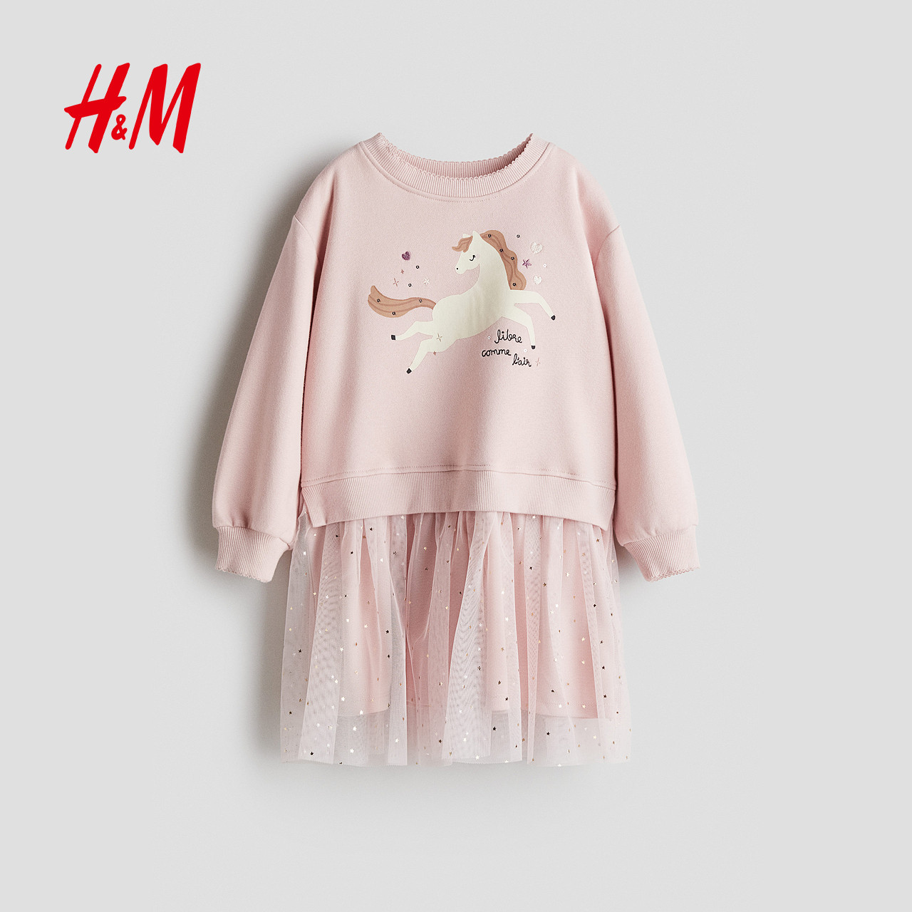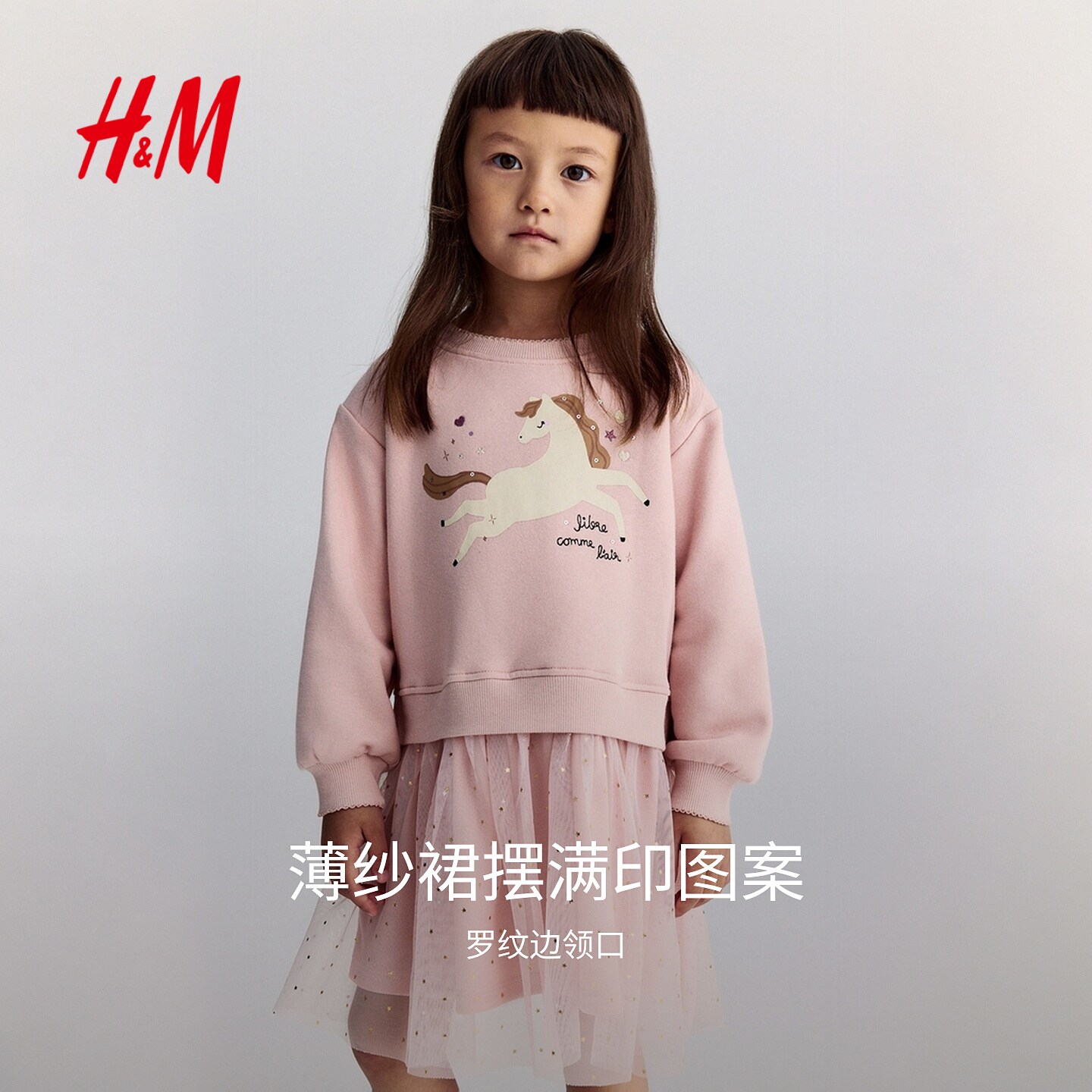 HM童装儿童女童裙子2025冬新款薄纱裙摆卫衣连衣裙公主裙1303542