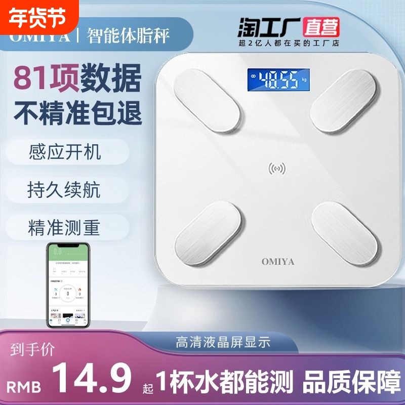沃莱智能体脂秤电子称体重的家庭用高精准度小型人体减肥计器充电