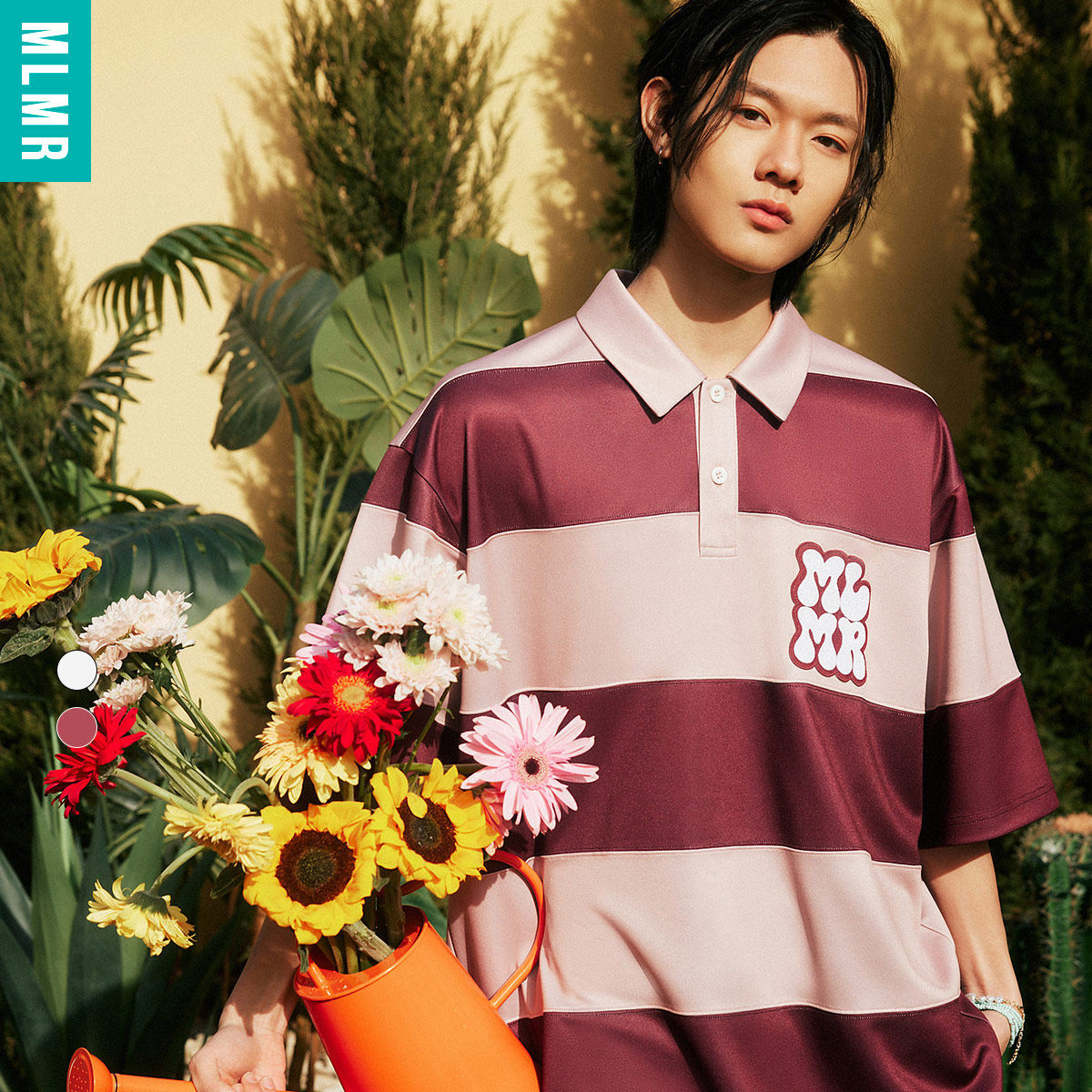 MLMR夏季情侣款翻领T恤复古舒适经典条纹男士POLO衫男款短袖男装