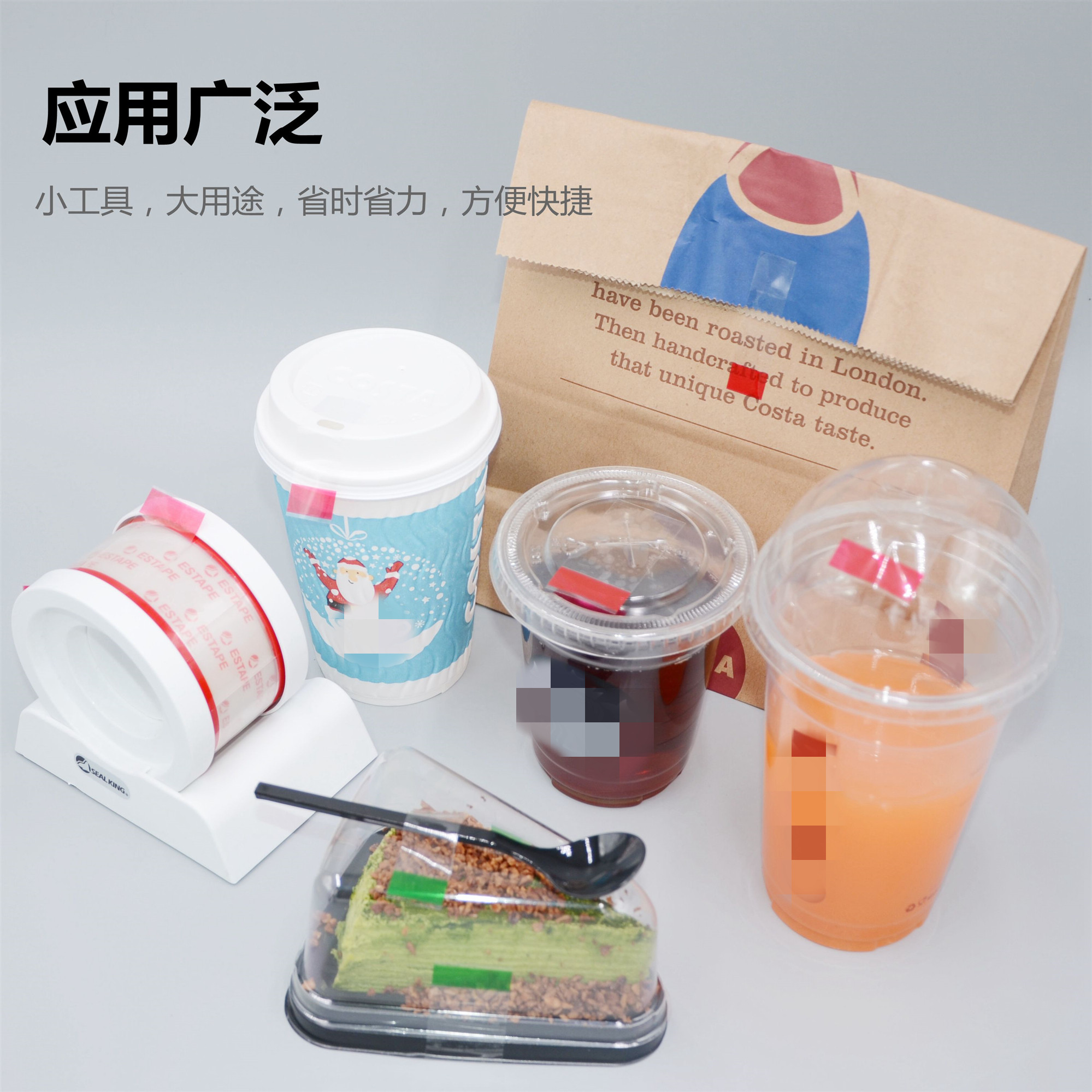 estape易撕贴封口贴咖啡奶茶饮品可乐外卖防漏透明胶带包装贴纸