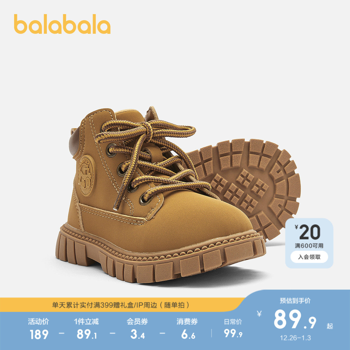巴拉巴拉童鞋儿童马丁靴男童婴儿靴子加绒秋冬拉链款短靴户外时尚