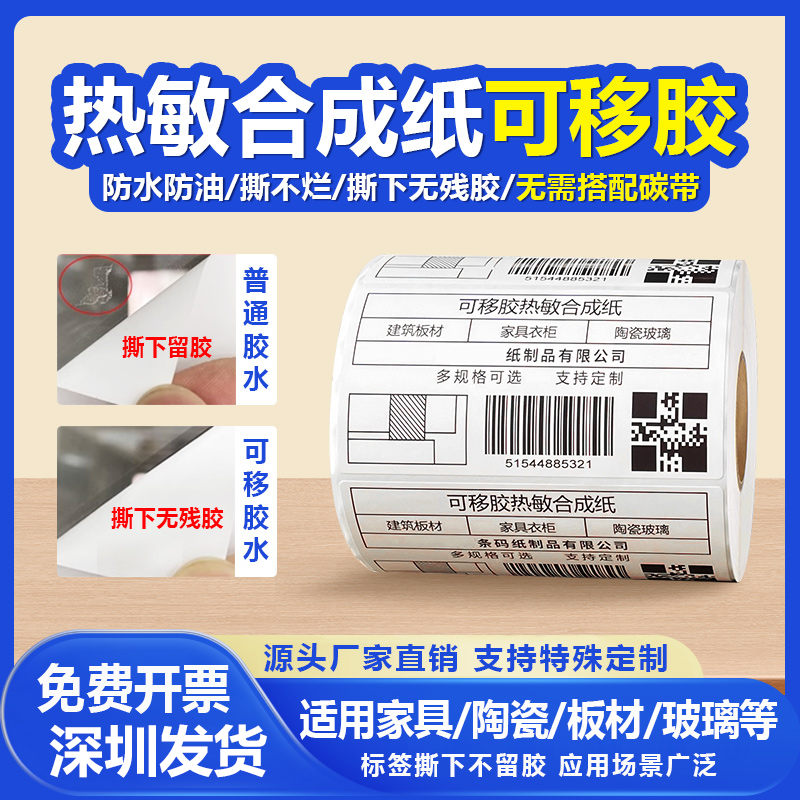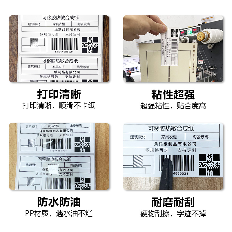 五防热敏标签纸60x40合成纸撕不烂可移除标签耐高温低温防水打印