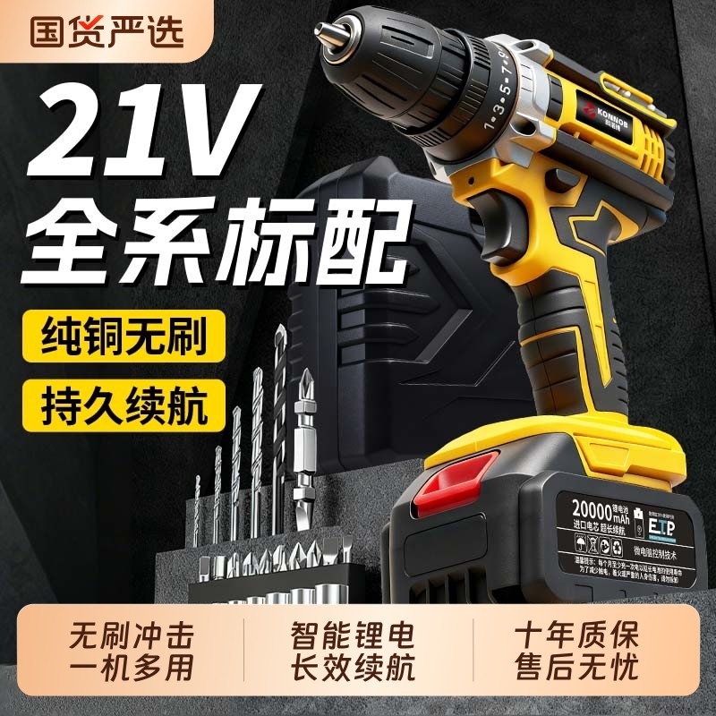 手电钻无刷冲击锂电转家用充电式手枪钻打孔工具多功能电动螺丝刀