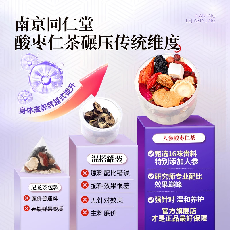 同仁堂酸枣仁百合茯苓茶睡眠茶助失神安中药材多梦质量差眠养生茶