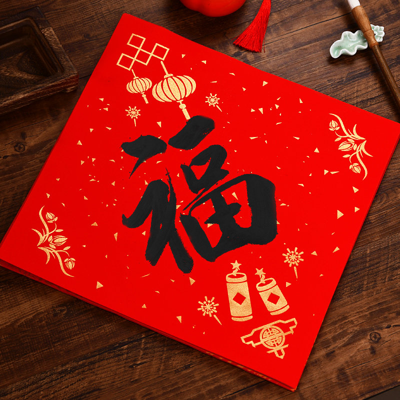 对联纸春联专用纸红纸斗方福字写手写空白福字2026新年万年红对联专用纸春字加厚宣纸蜡染洒金春节门贴春联纸