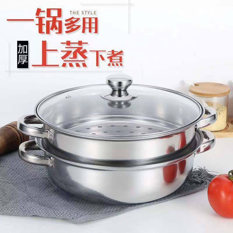 不锈钢蒸锅28cm加厚双层汤蒸锅多用锅火锅电磁炉直销促销礼品