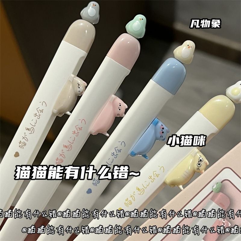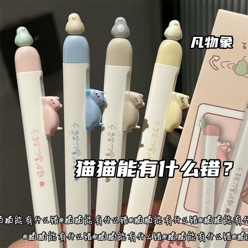 凡物象猫猫磁吸小鸟中性笔ins高颜值学生考试用0.5速干刷题CS黑笔