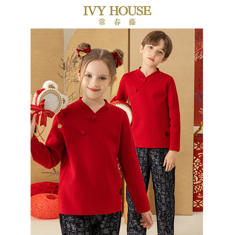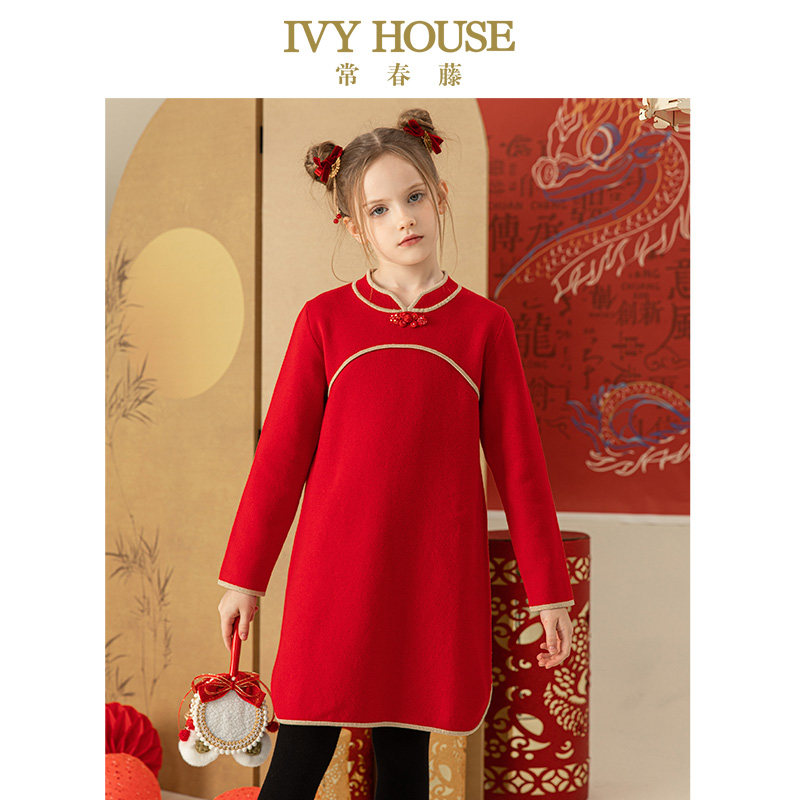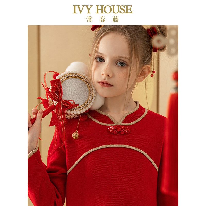 IVY HOUSE常春藤童装男女童春季新款 中式国风连衣裙旗袍毛衣新年