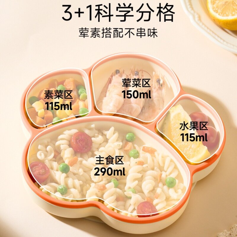 宝宝餐盘吸盘婴儿辅食硅胶吸管分格吃饭儿童餐具套装不锈钢分隔式