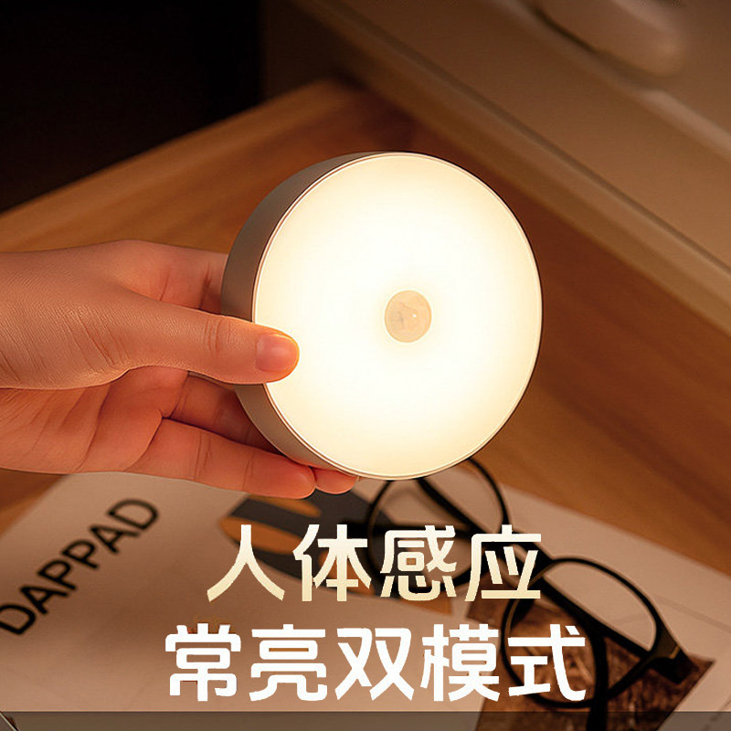 充电人体感应灯led免布线磁吸旋转卧室床头USB灯起夜小夜灯