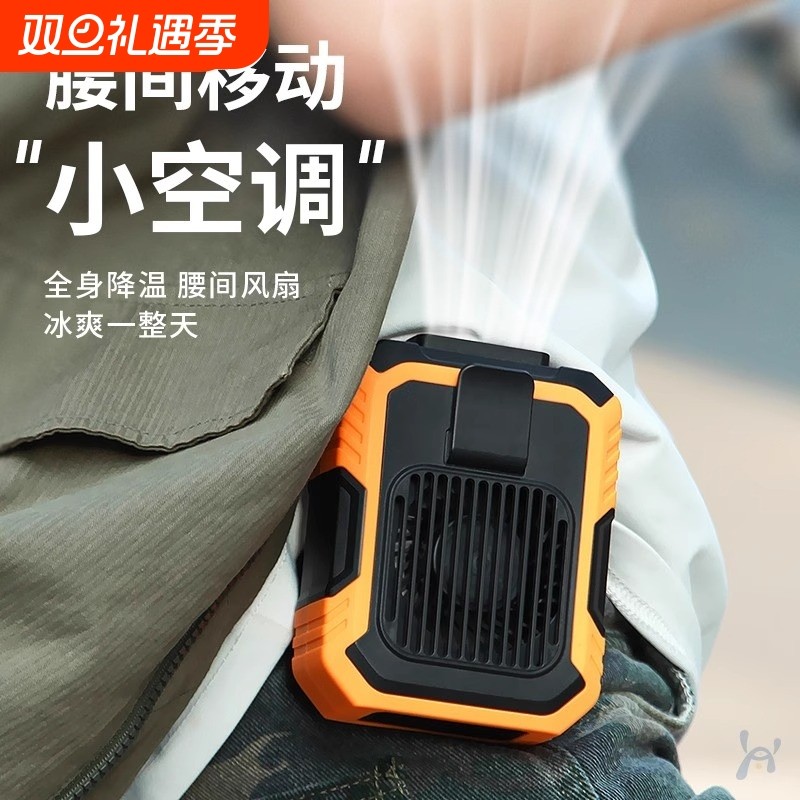 挂腰风扇随身便携式夹腰间消暑降温神器高温户外工地充电强力小风扇挂脖夏天季厨房制冷空调衣服穿戴超长续航