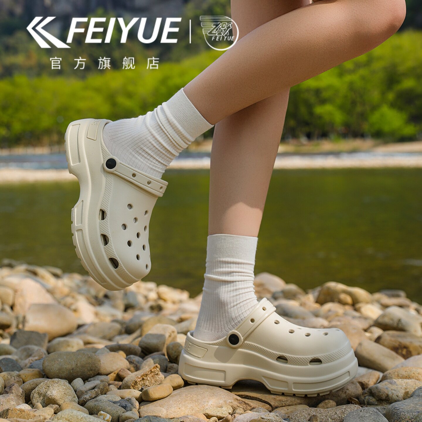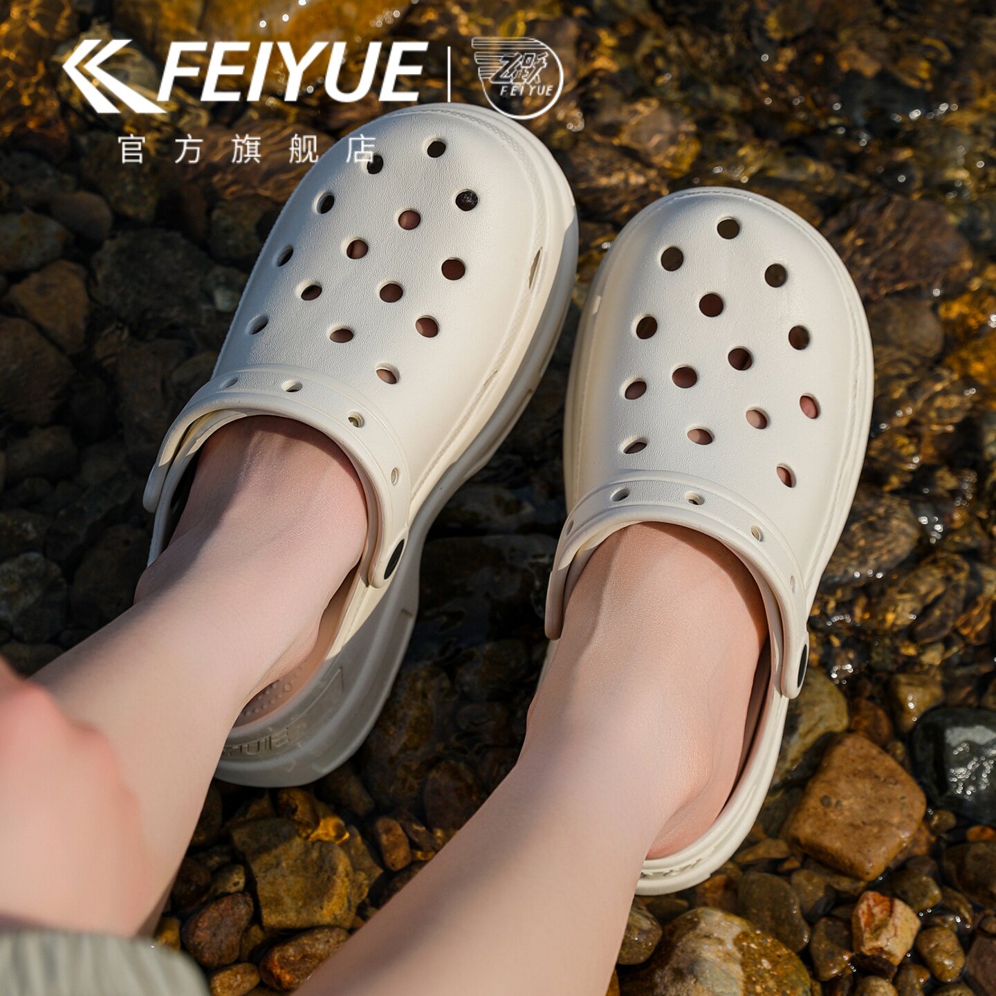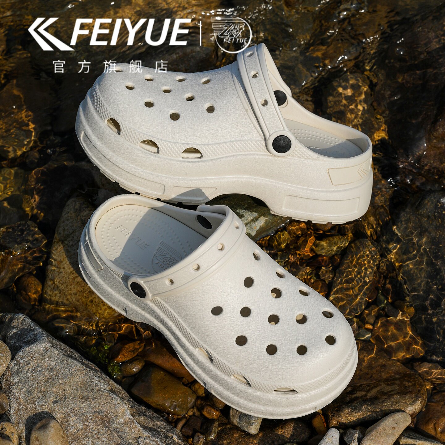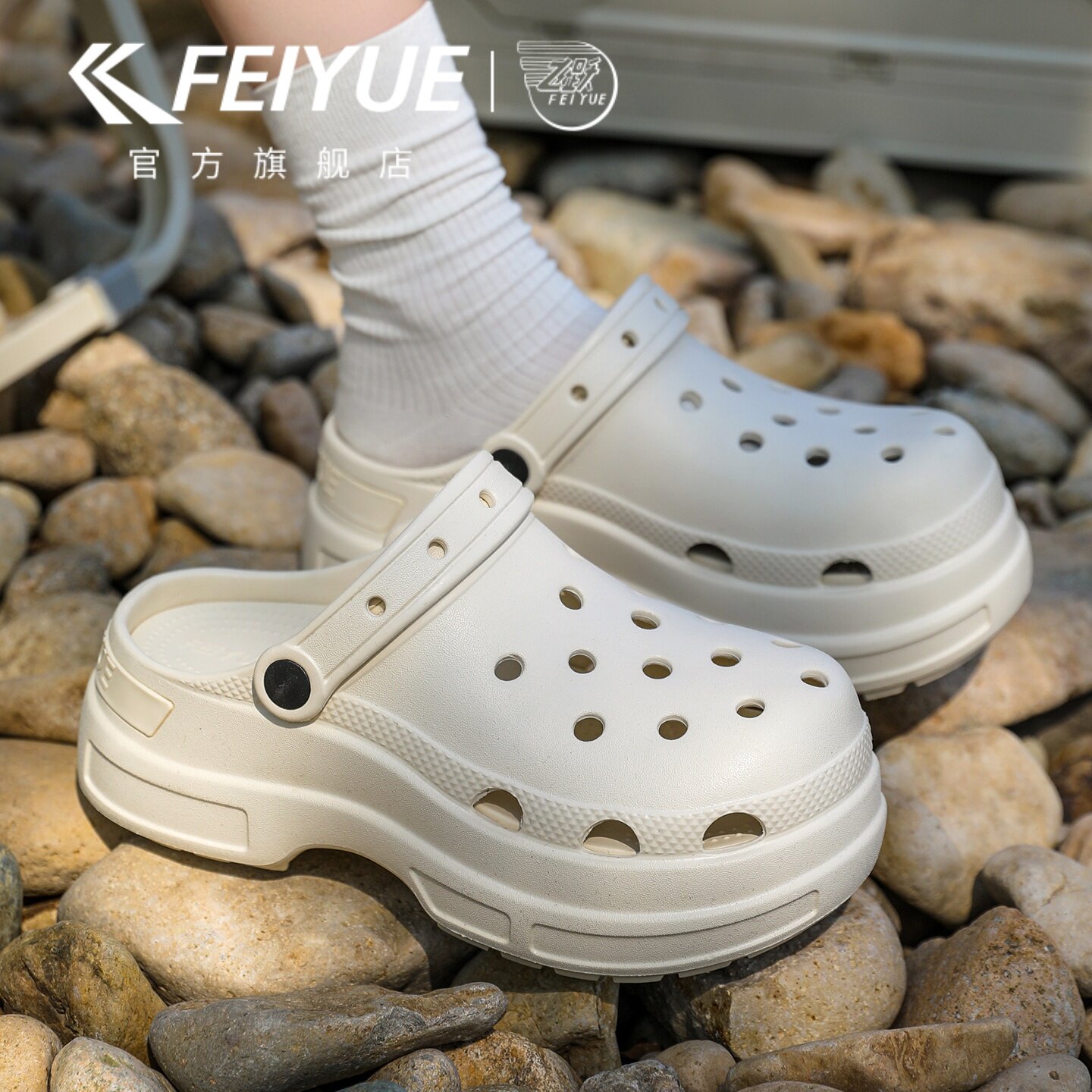 feiyue/飞跃洞洞鞋女款2026夏新款厚底户外休闲凉拖鞋外穿沙滩鞋