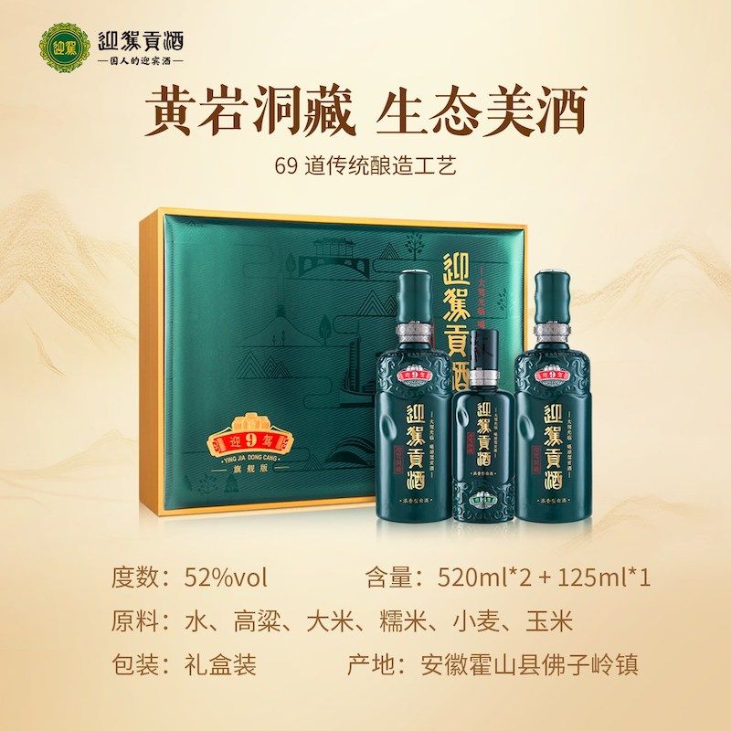 迎驾贡酒迎驾洞藏9浓香型白酒50度520ml*2瓶+125ml礼盒装加配礼袋