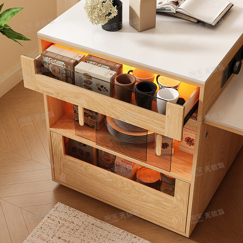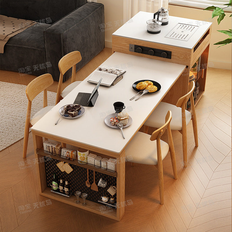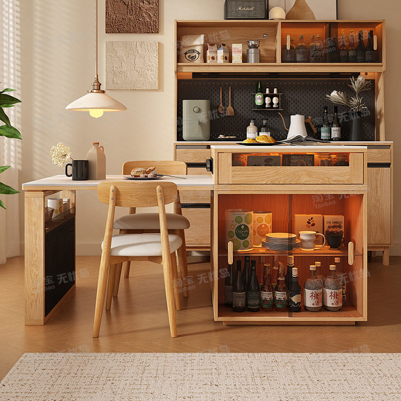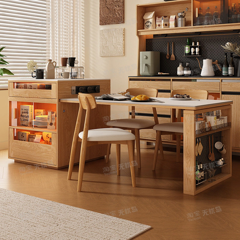 北欧风实木岛台餐桌多功能一体可伸缩红橡木饭桌椅子客厅家用导台