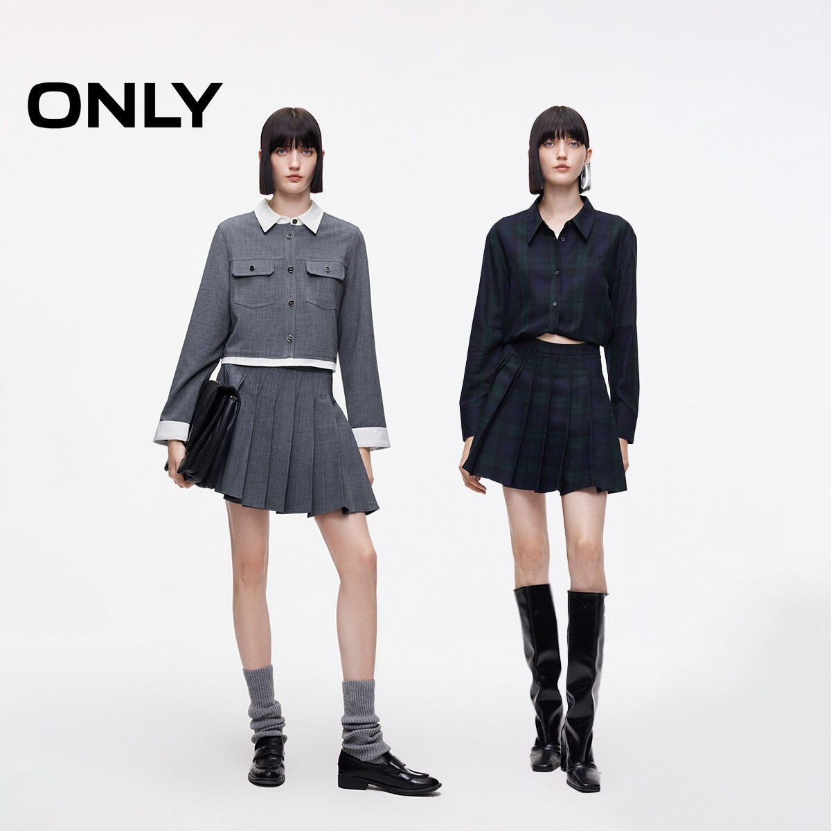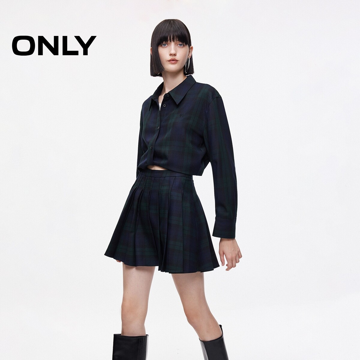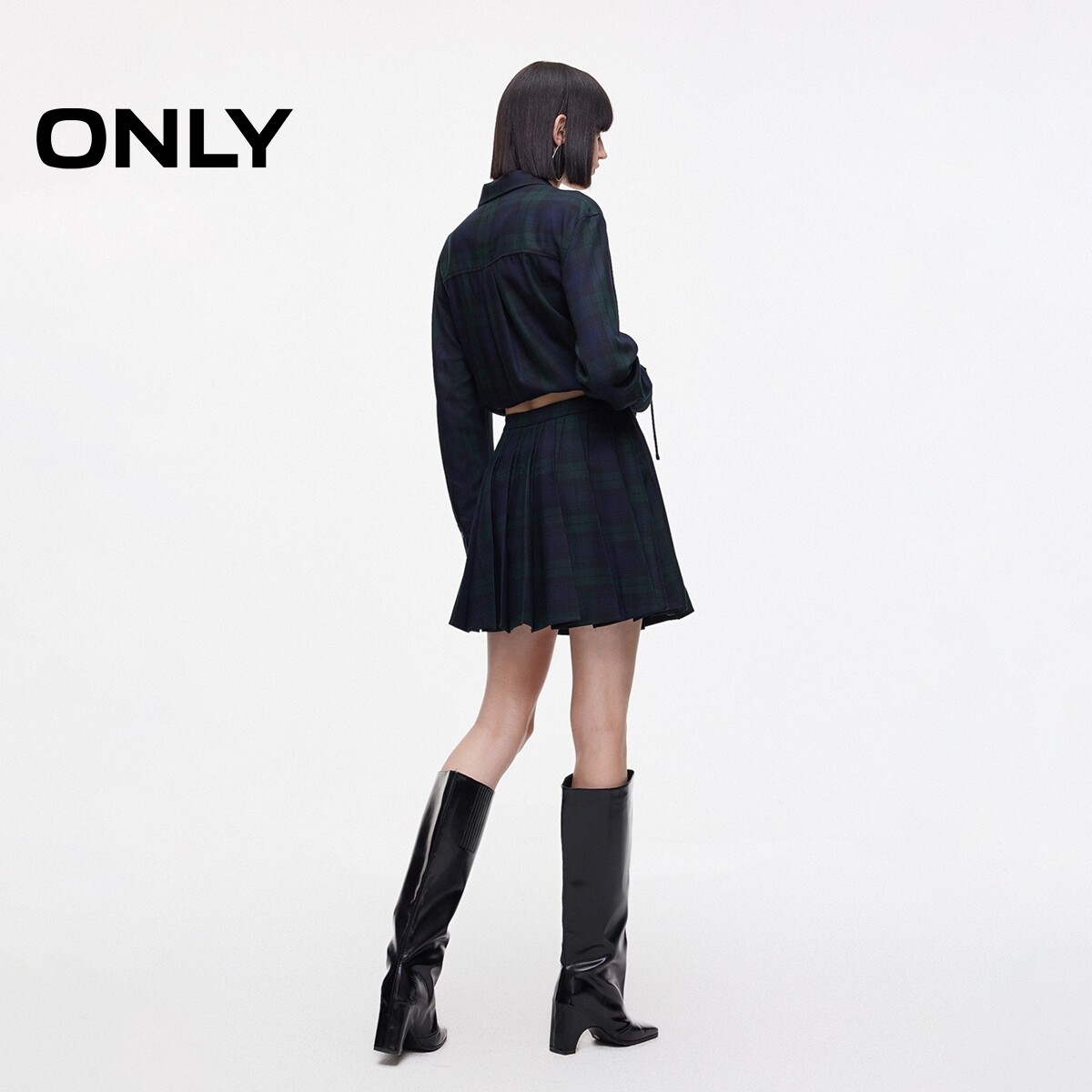 【ONLY奥莱】春款显瘦A字隐形拉链压褶设计短裙百褶裙半身裙女