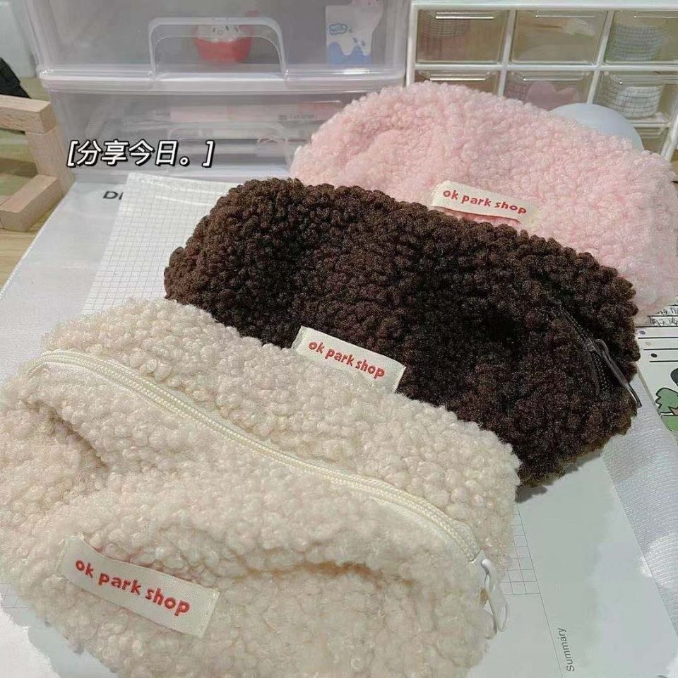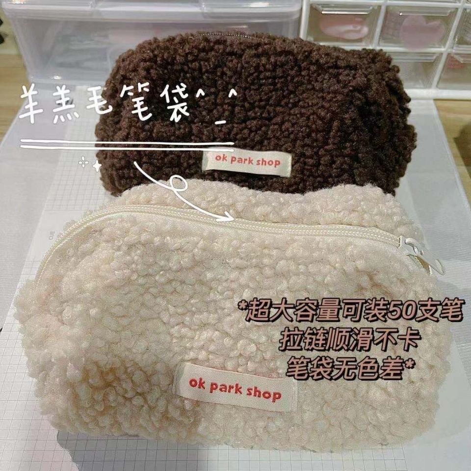 新品 日系ins笔袋羊羔毛化妆包毛绒收纳袋高颜值网红可爱文具袋大