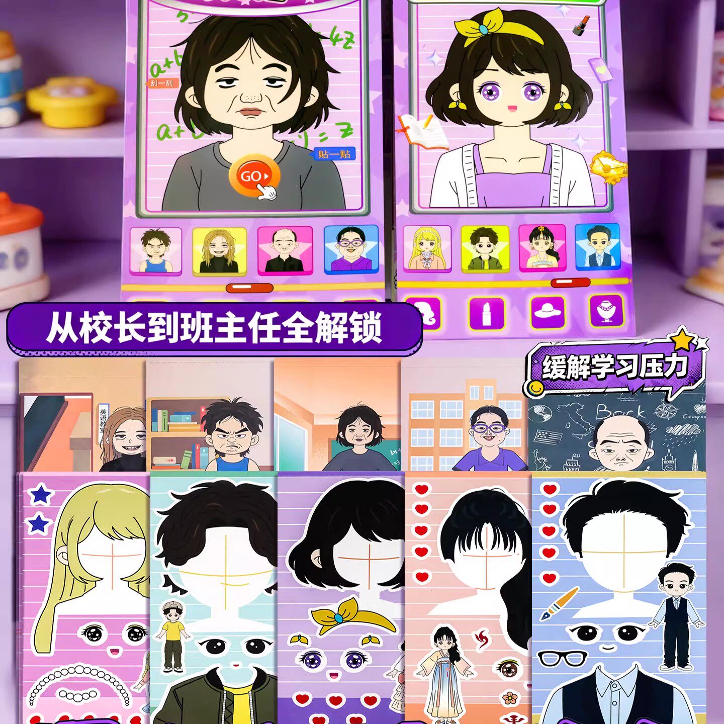 萌崽新款学霸学渣果冻贴纸安静书儿童免裁剪手工粘贴DIY女孩趣味玩具