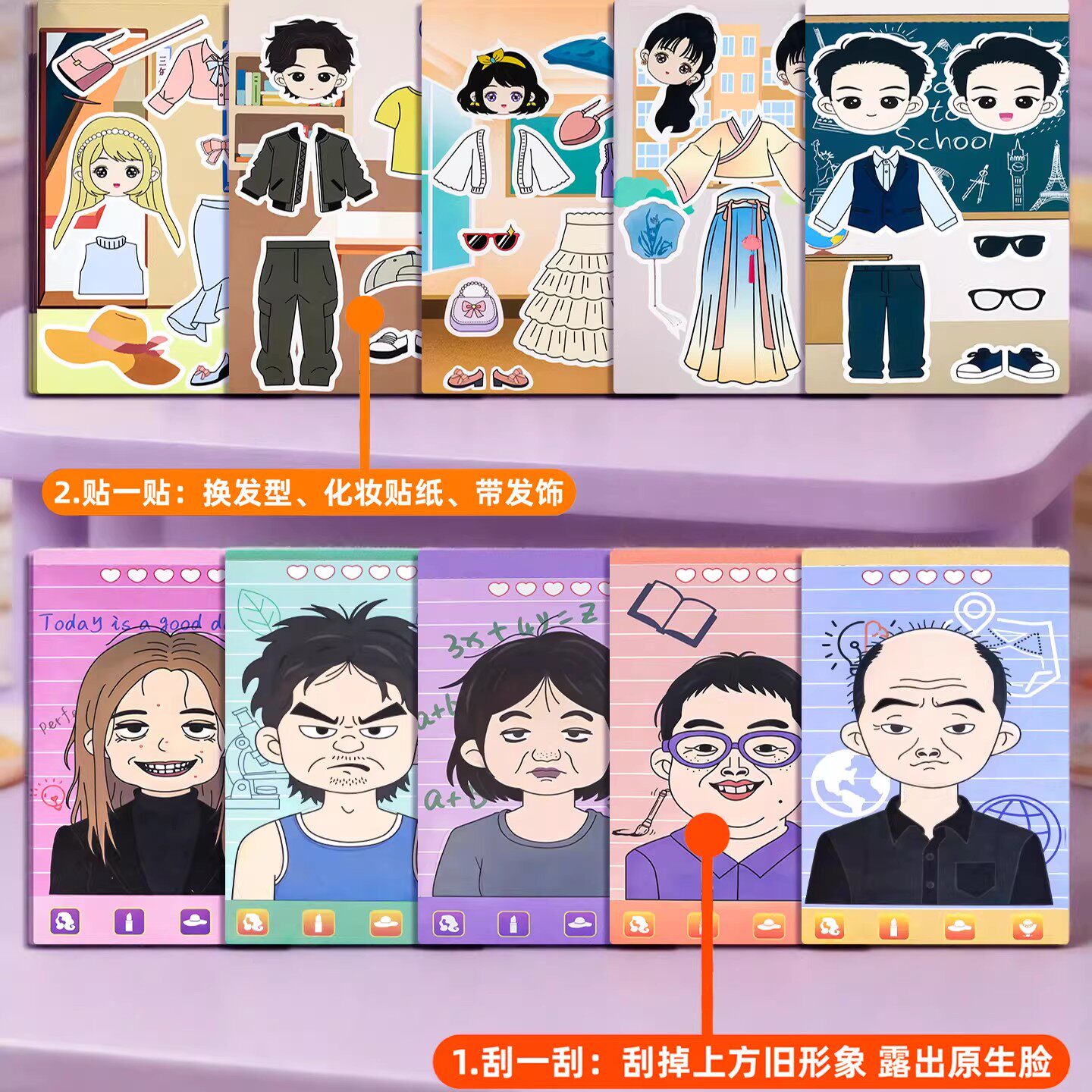 贴纸女孩儿童爆改班主任刮刮画造景贴纸书女孩手工diy3d立体换装贴画材料包装饰小图案幼儿园奖励粘贴画玩具6