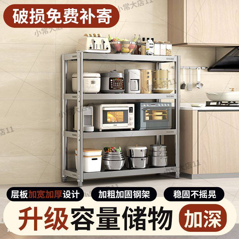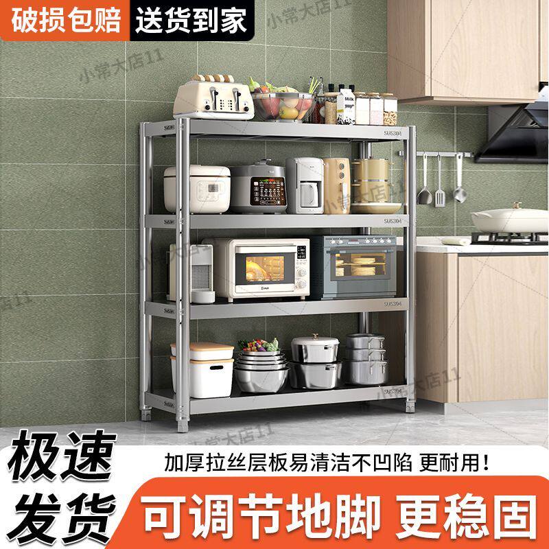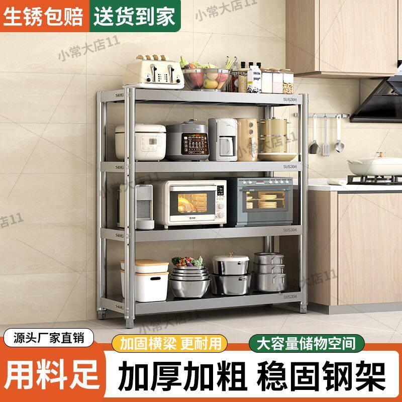 304厨房置物架落地多层收纳微波炉不锈钢储物货架家用烤箱橱柜