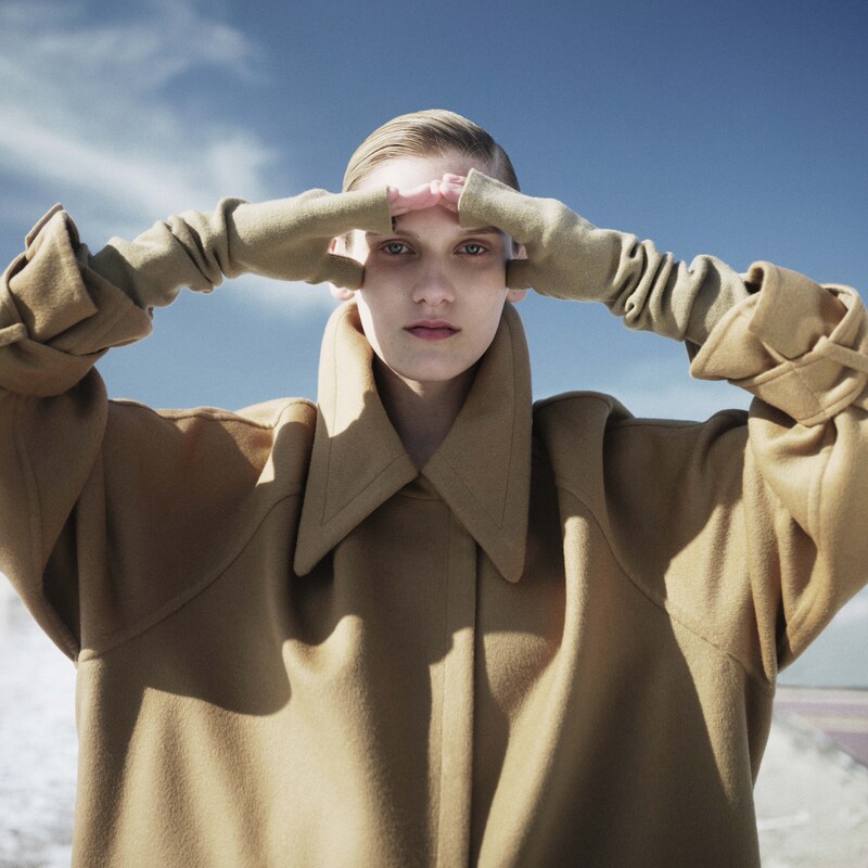 含羊绒双面呢带光泽,穿着品质感强保暖性好